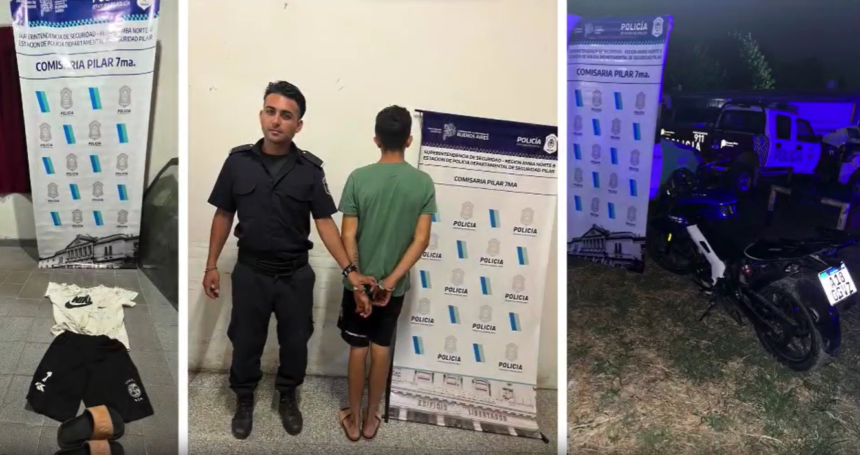Con trabajo conjunto entre la Policía de Pilar, efectivos de la localidad de Pablo Nogués y la Secretaría de Seguridad, fue detenido un delincuente de 19 años de edad, que robó una motocicleta de una estación de servicio.