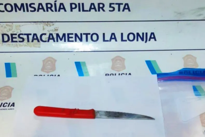 Ante el arribo de los uniformados, ella permitió que entraran a la vivienda para detener al violento, el cual se encontraba mirando televisión, acostado en su cama. El sujeto aún sostenía el cuchillo que había utilizado para lastimar a su pareja: tenía el mango de plástico color rojo y manchas hemáticas en la hoja.
